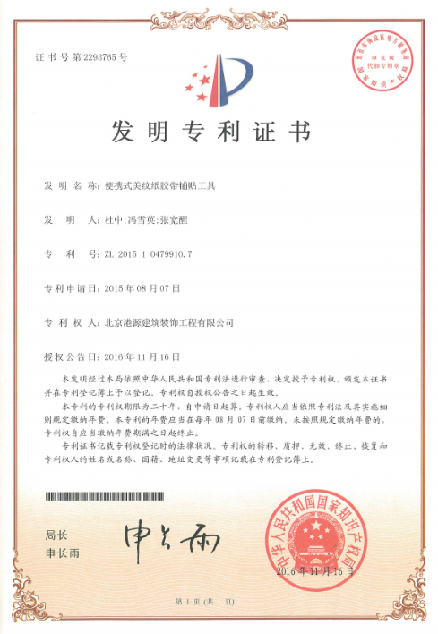 發(fā)明專(zhuān)利-便攜式美紋紙膠帶鋪貼工具