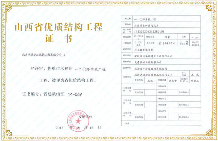山西省優(yōu)質(zhì)結構工程