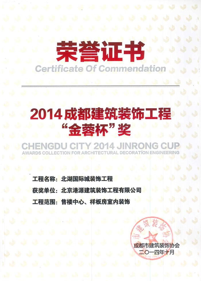 成都建筑裝飾工程“金蓉杯”獎