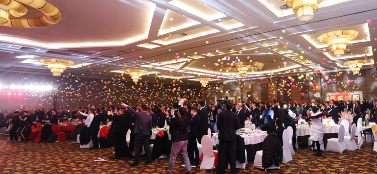 2019年1月30日,正值萬(wàn)象更新之際,港源裝飾成立26年來(lái)規模最大的一次全員聚會(huì )——“聚勢而上,敢為共行”2019港源裝飾新春盛典暨頒獎典禮,在北京九華山莊舉行。